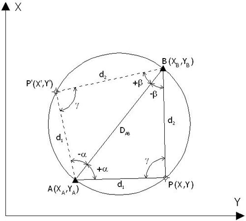 Determinam distanta si orientarea intre punctele vechi cu urmatoarele relatii: